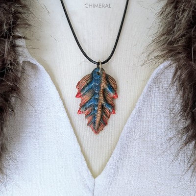 Necklace inspired by the Seregios, monster from the game Monster Hunter. Hand sculpted and painted scale.