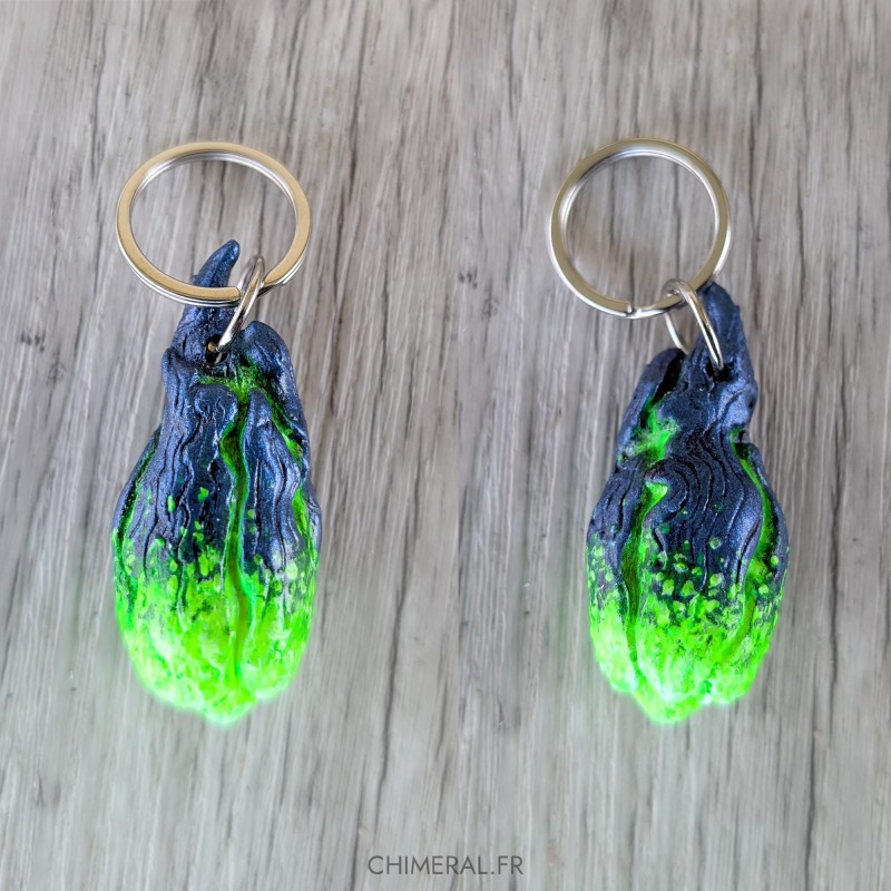 Keychain inspired by the Brachydios, monster from the game Monster Hunter. Hand sculpted and painted scale.