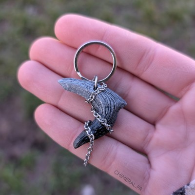 Keychain inspired by the Arkveld, monster from the game Monster Hunter. Hand sculpted and painted scale.