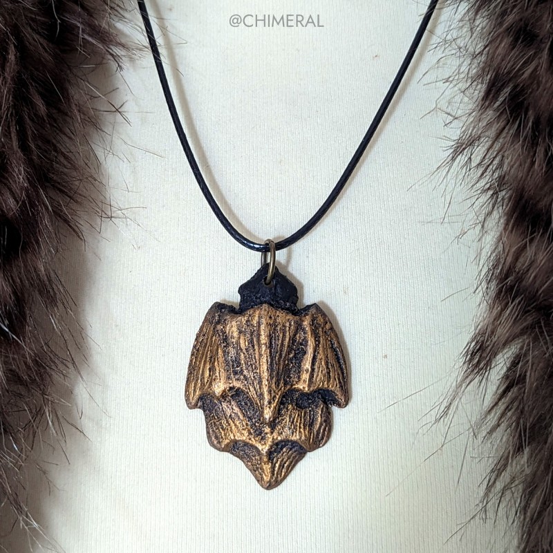 Collier inspiré du Rathalos, monstre du jeu Monster Hunter. Écaille sculptée et peinte à la main.