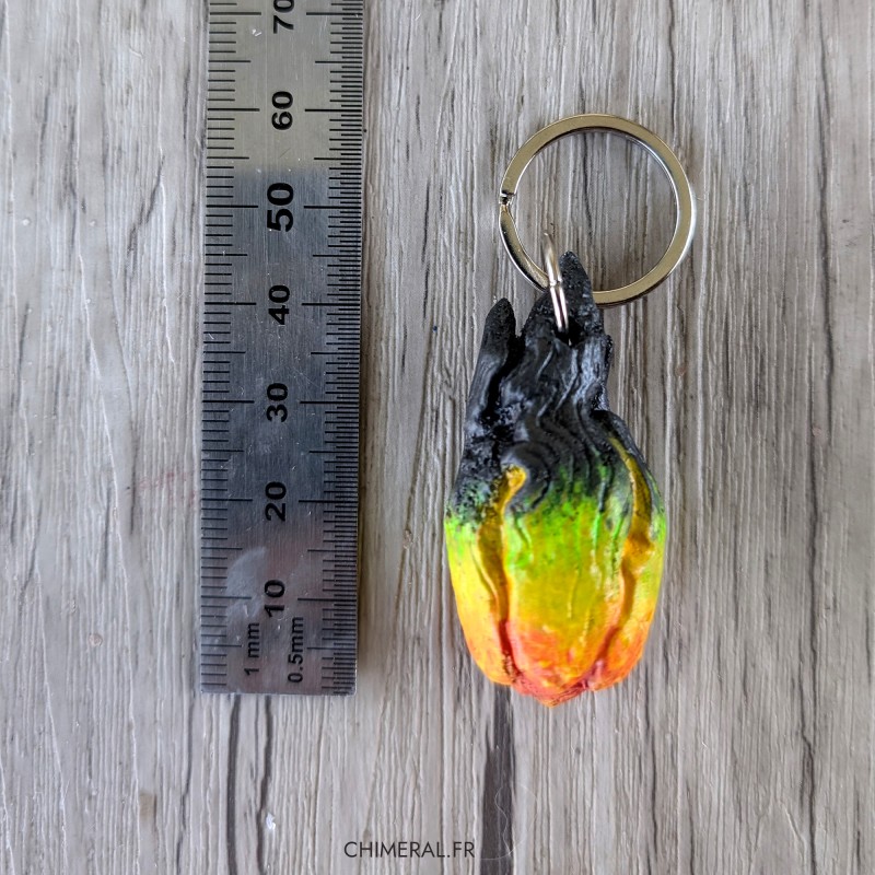 Porte-clef inspiré du Brachydios Tempête, du jeu Monster Hunter. Écaille sculptée et peinte à la main.